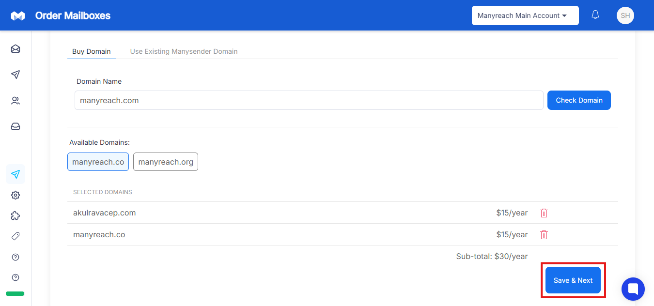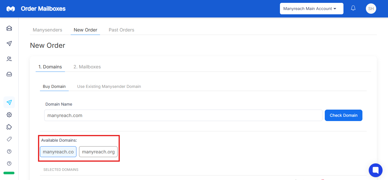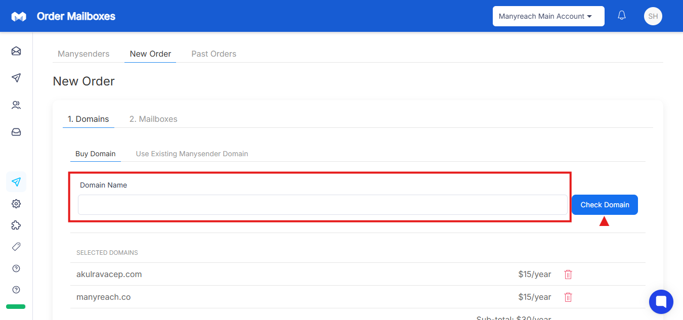4. It will take you to the “New Order” section, where you have to first add the domain name, and check it.