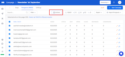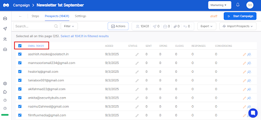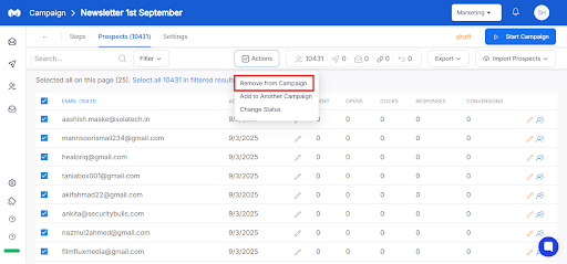 4. Now bulk select the contacts you want to delete and click the Check option and you’ll find the “Remove Prospect” button.
