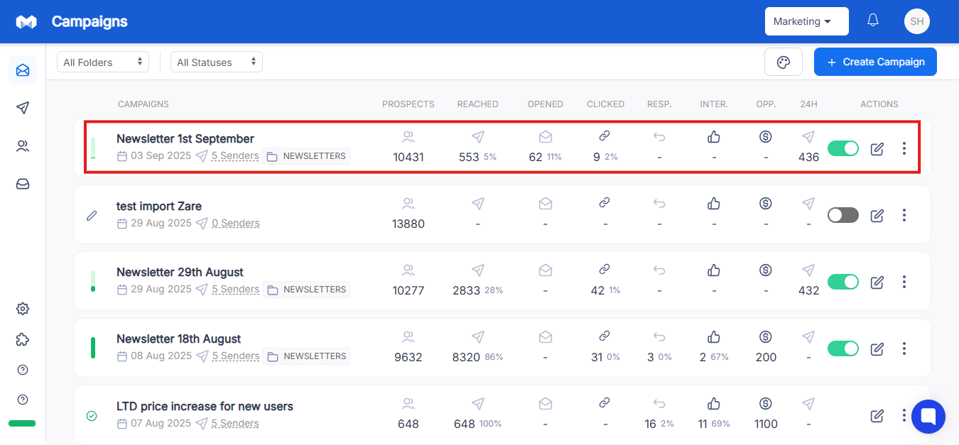 1. Go to your campaign Dashboard and click on your desired campaign.