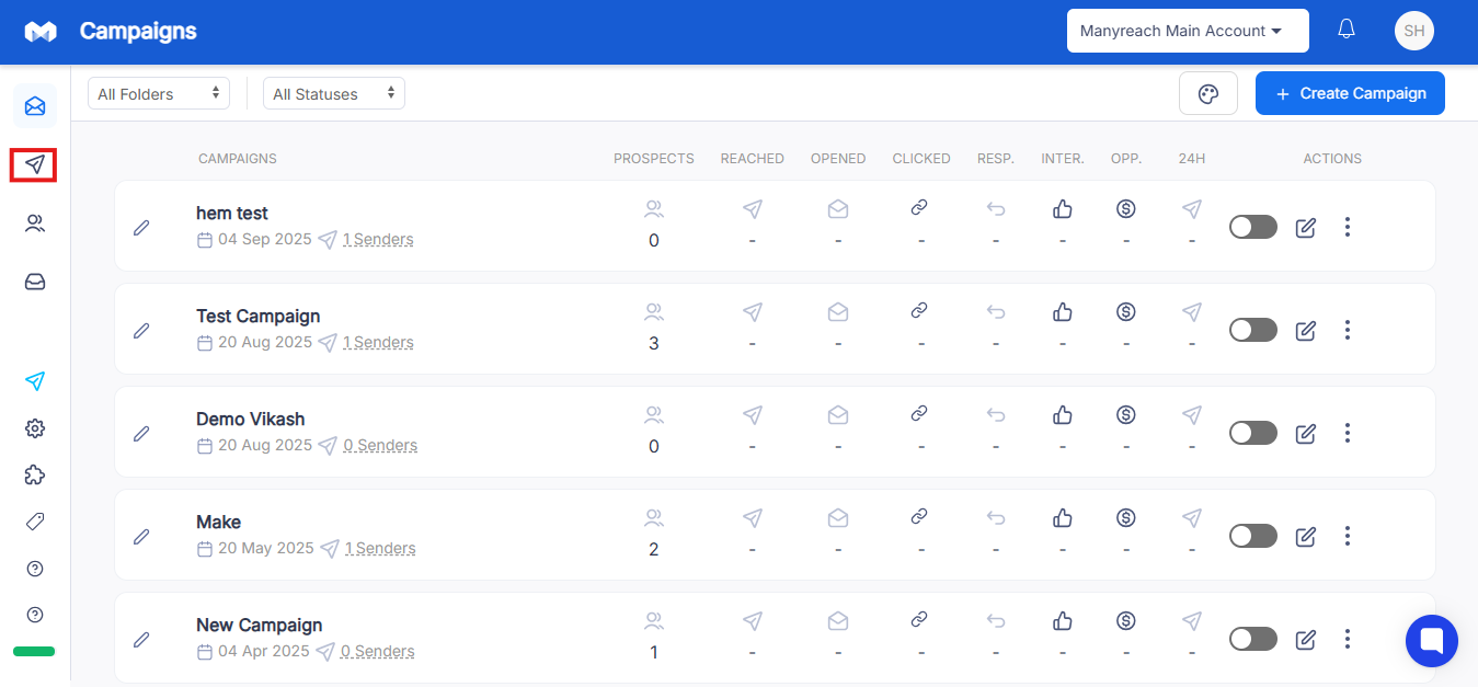 1. First you have to go to your Manyreach dashboard, and go to the Senders’ list.