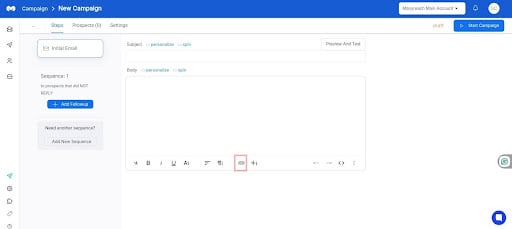 3. Then, open your campaign and click the ‘Link’ icon at your email body’s footer.