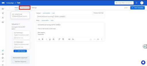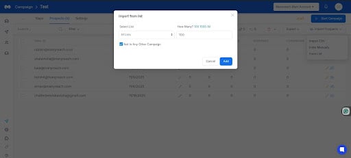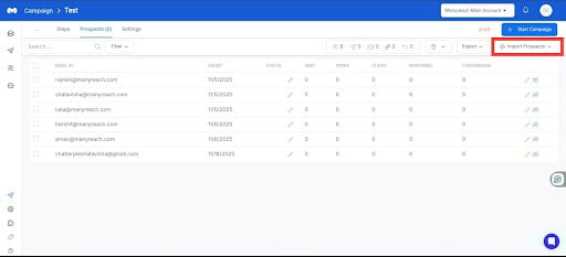 Once you’re in your campaign, find the “Prospects” option, and go there.