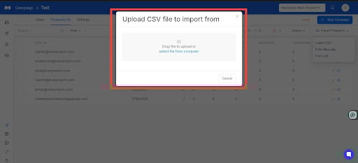 You can choose your preferred way of uploading the prospects, and that’s it; you’ll be done adding leads in bulk to your Manyreach.