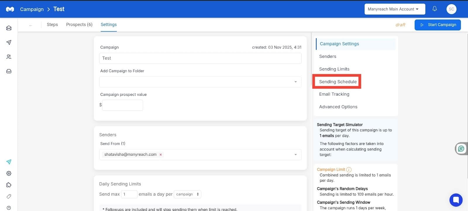 You can schedule your campaigns in Manyreach very easily. Follow these steps and schedule your email campaigns in a couple of minutes.